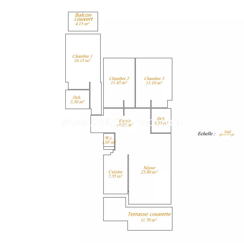 Quiet, 90m2 T4 apartment on raised first floor. South-north exposure.