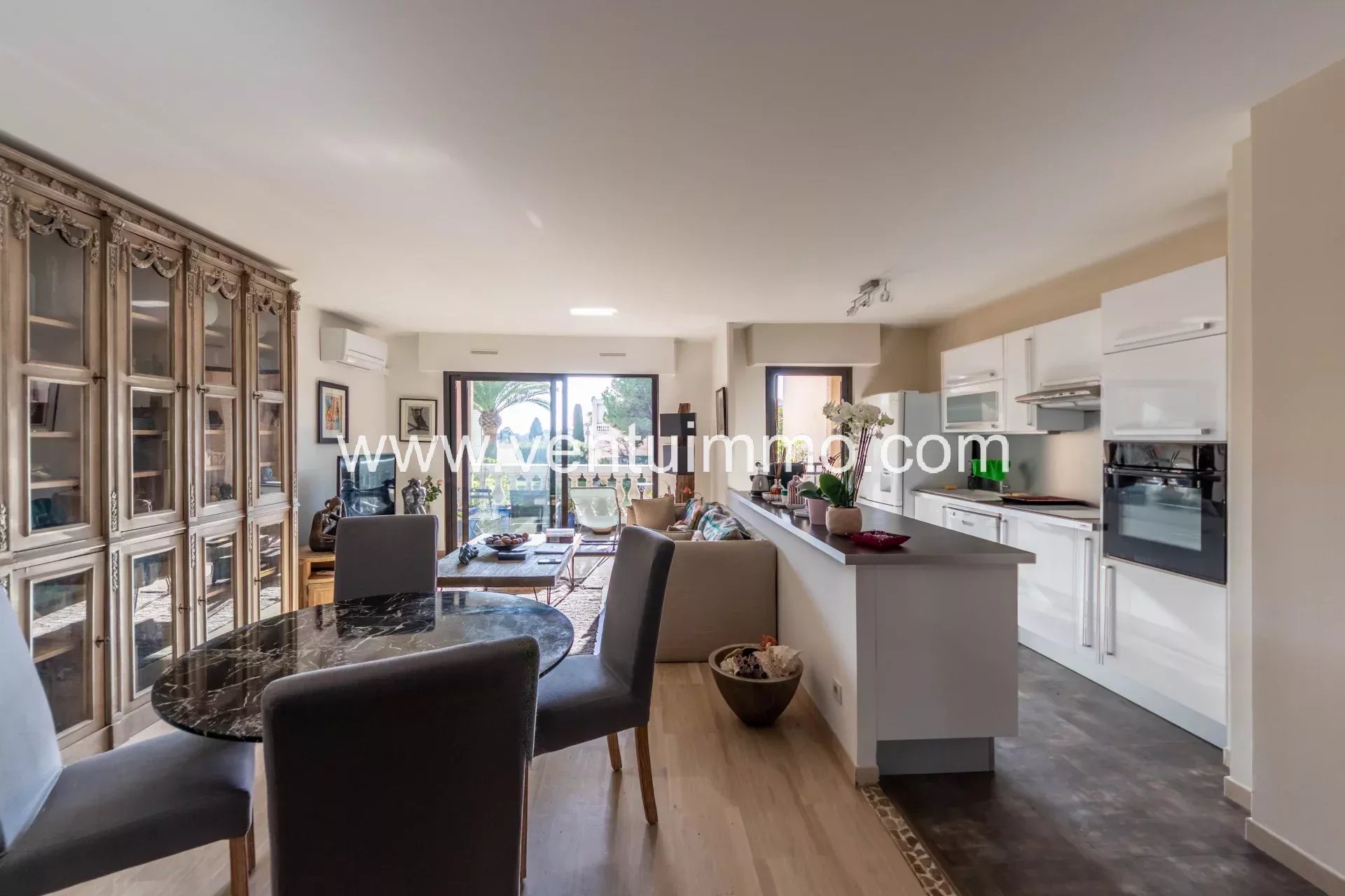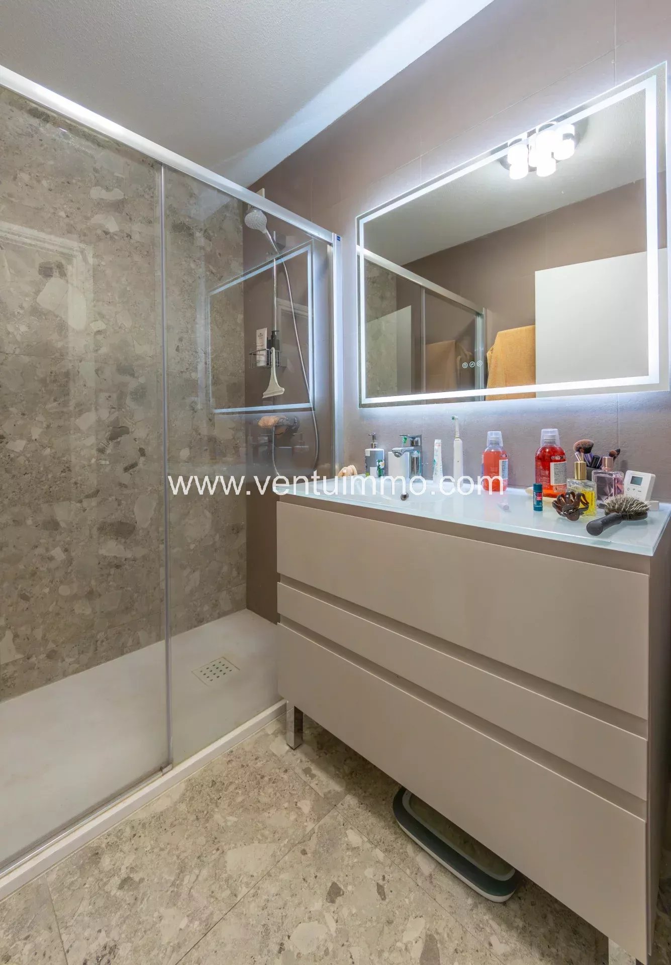 Comprising entrance hall, lovely living room with south-facing open-plan fitted kitchen, terrace, three bedrooms, one of which is en suite with private terrace and shower room with Italian shower (renovated in 2023), shower room and toilet.