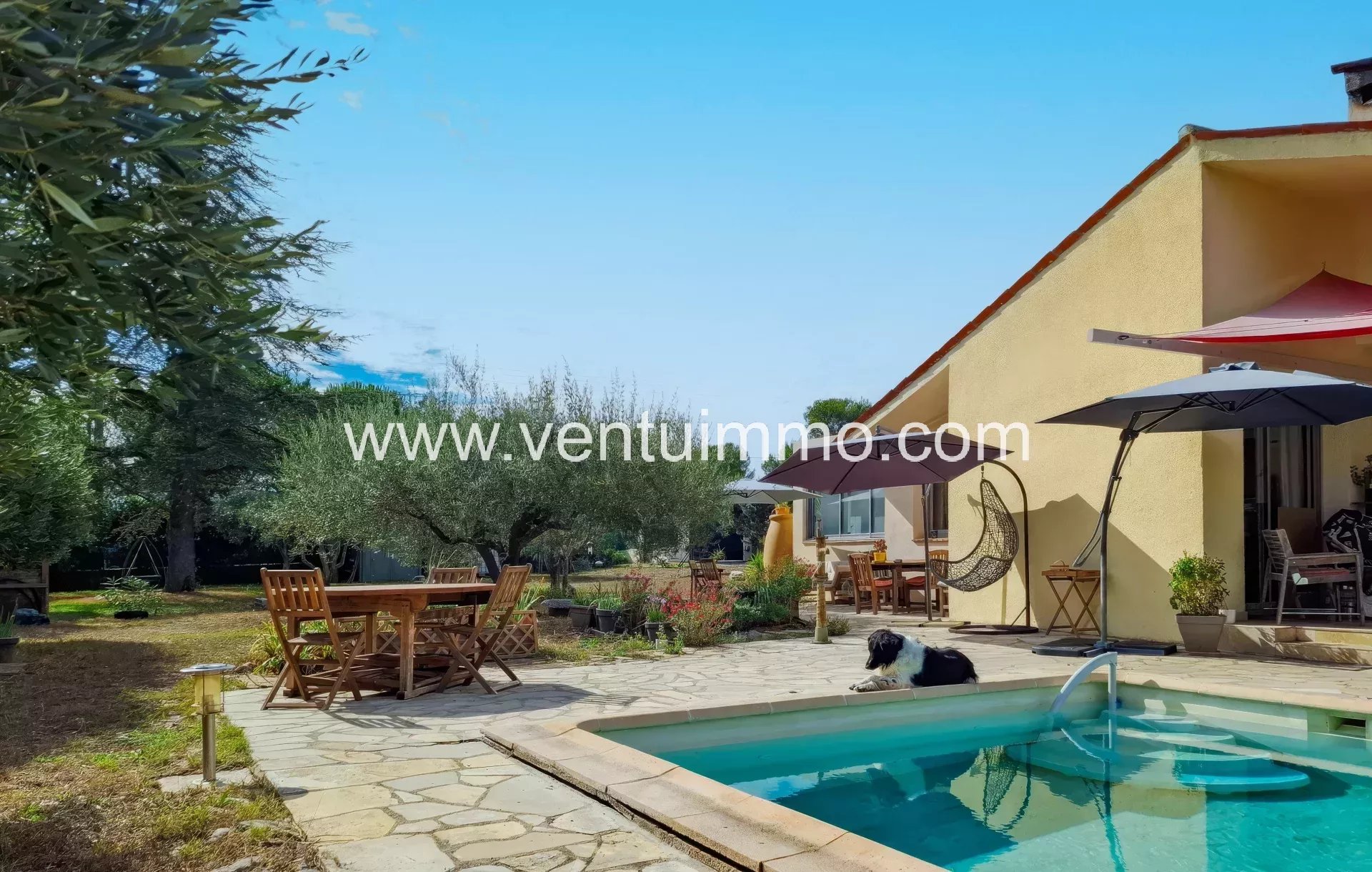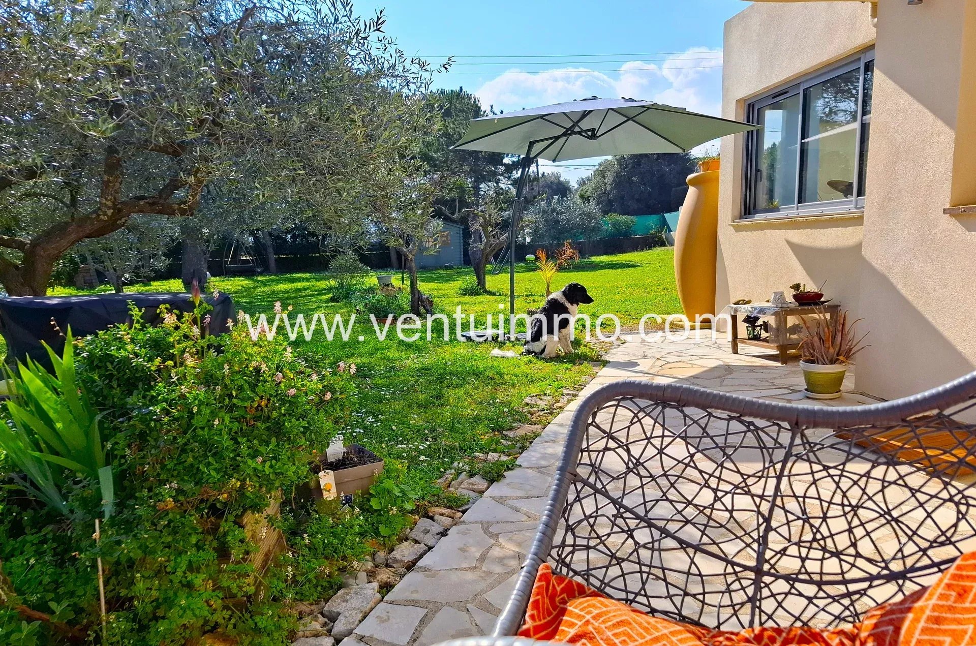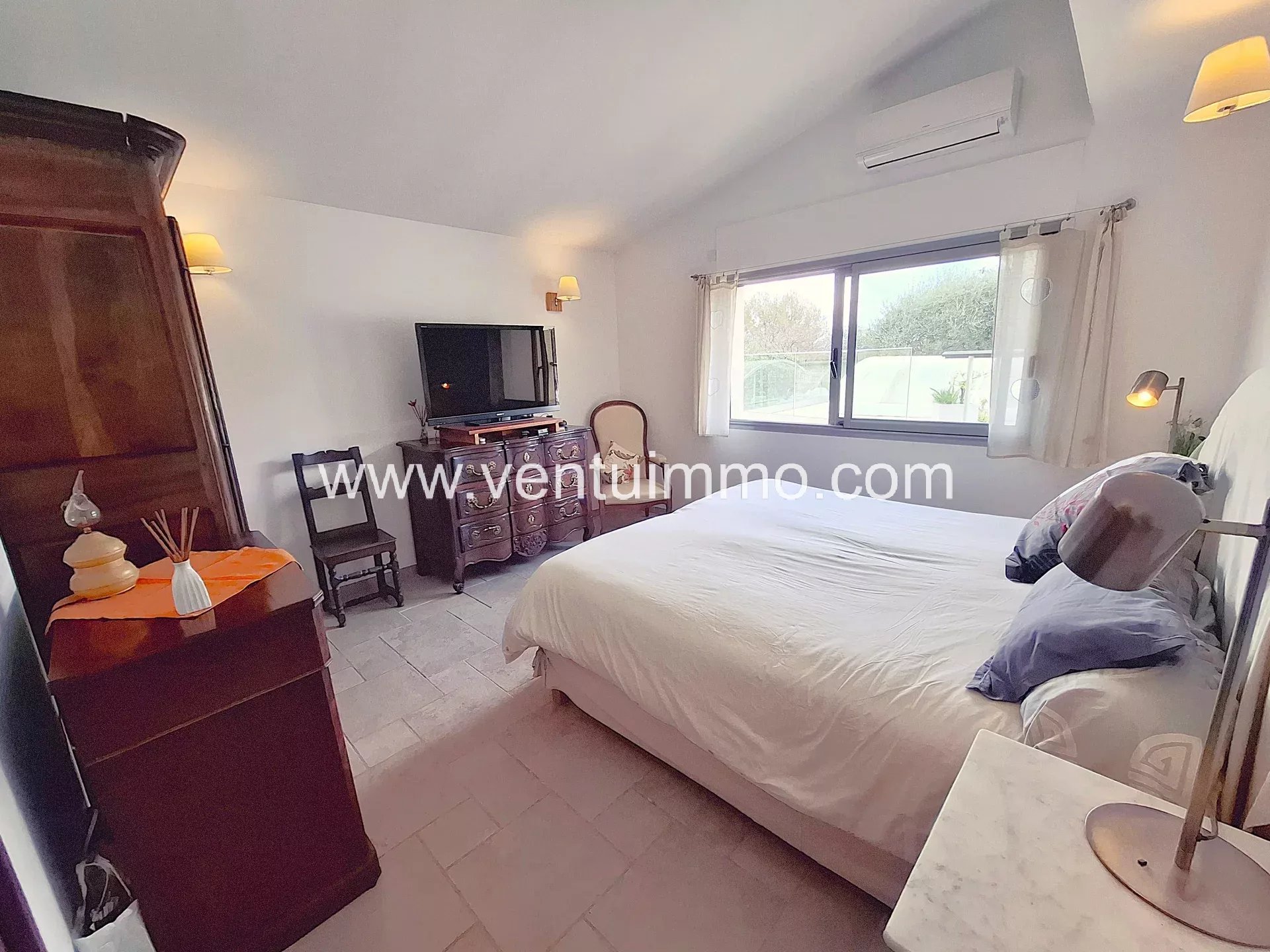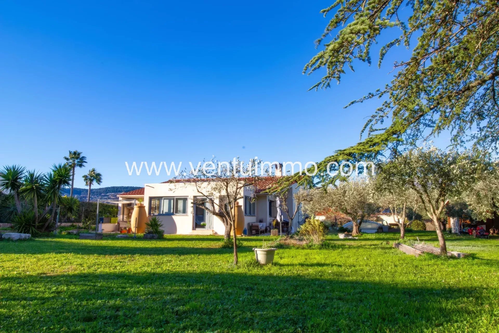 Set on approximately 2,800 m² of landscaped grounds planted with Mediterranean species and olive trees, this single-story, fully air-conditioned property offers 150 m² of bright and spacious living areas.